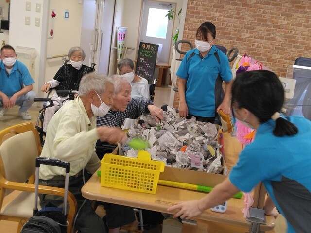 利用者さんと栗拾いゲームや、ご長寿的当てゲームをして楽しみました。