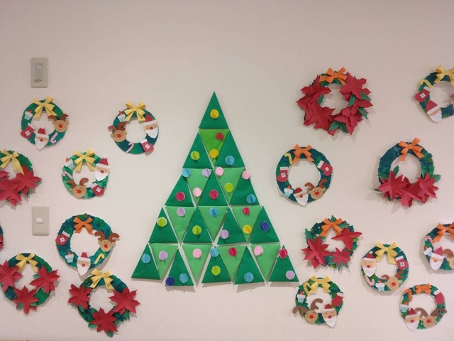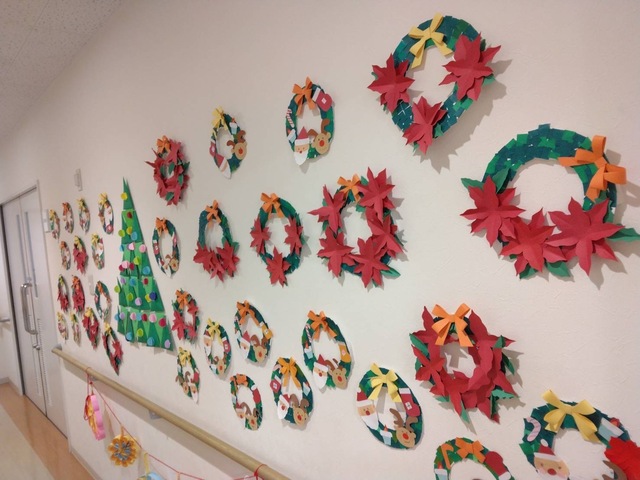 デイサービスでは、リースを利用者さんと飾り付けをしました。