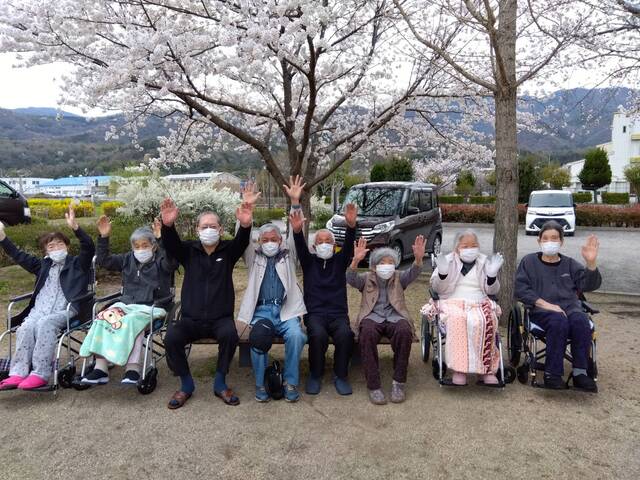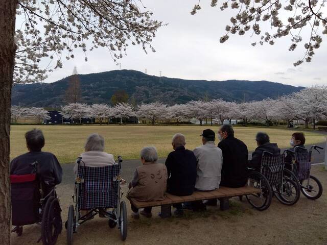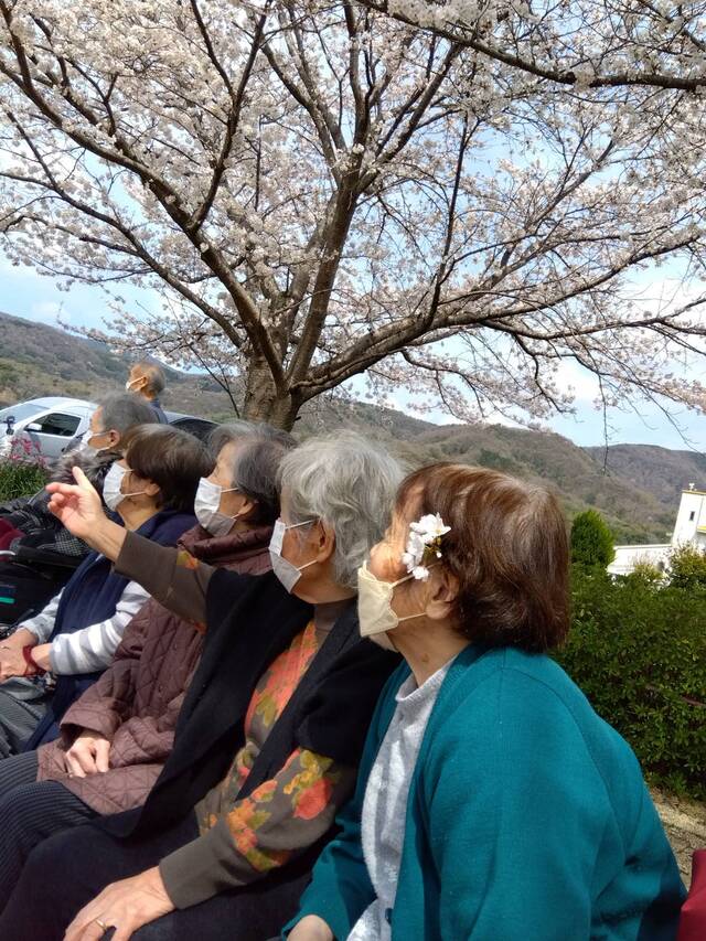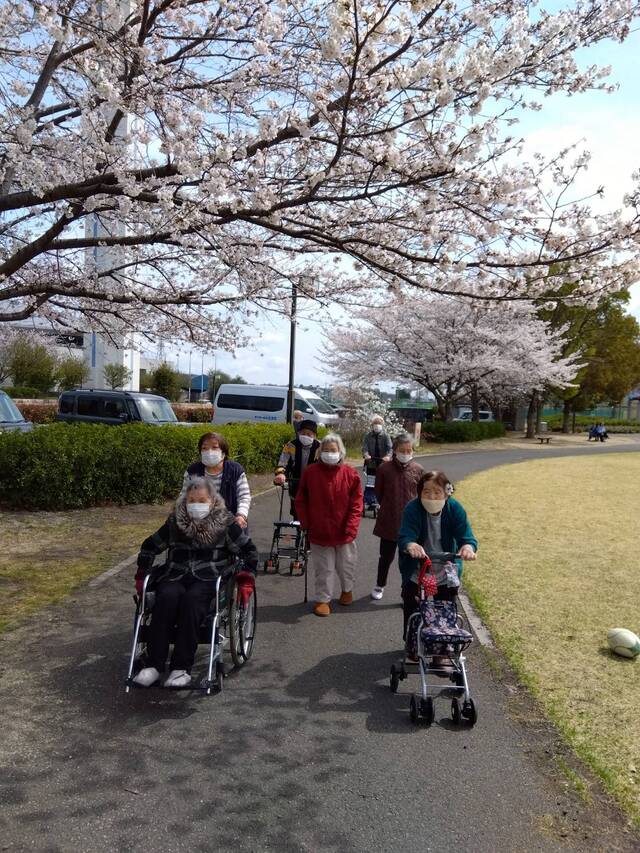 デイサービスの利用者の皆さんと公園前の桜を見に行きました。