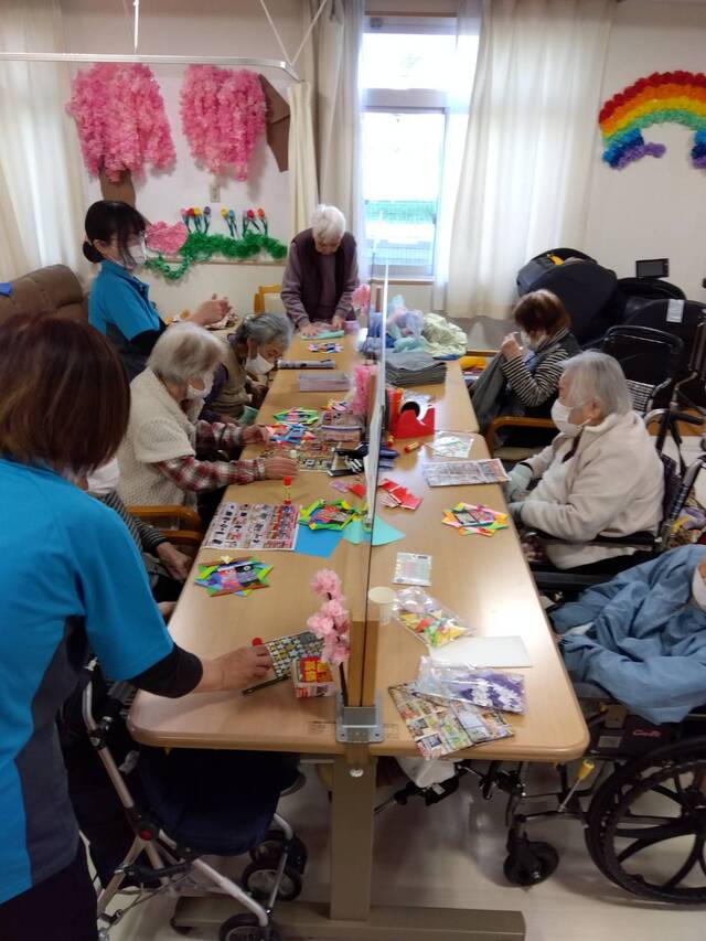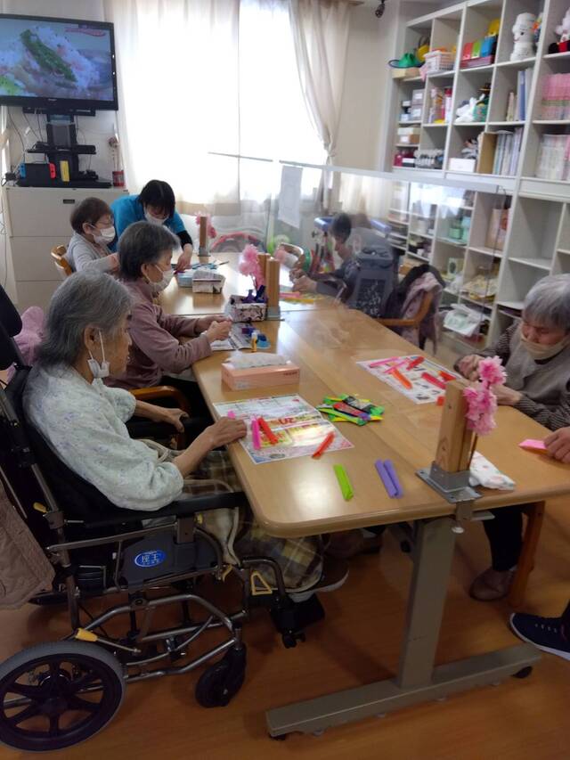 利用者の皆さんが鯉のぼりの壁飾りを作ってくださり、雰囲気が明るくなっています。