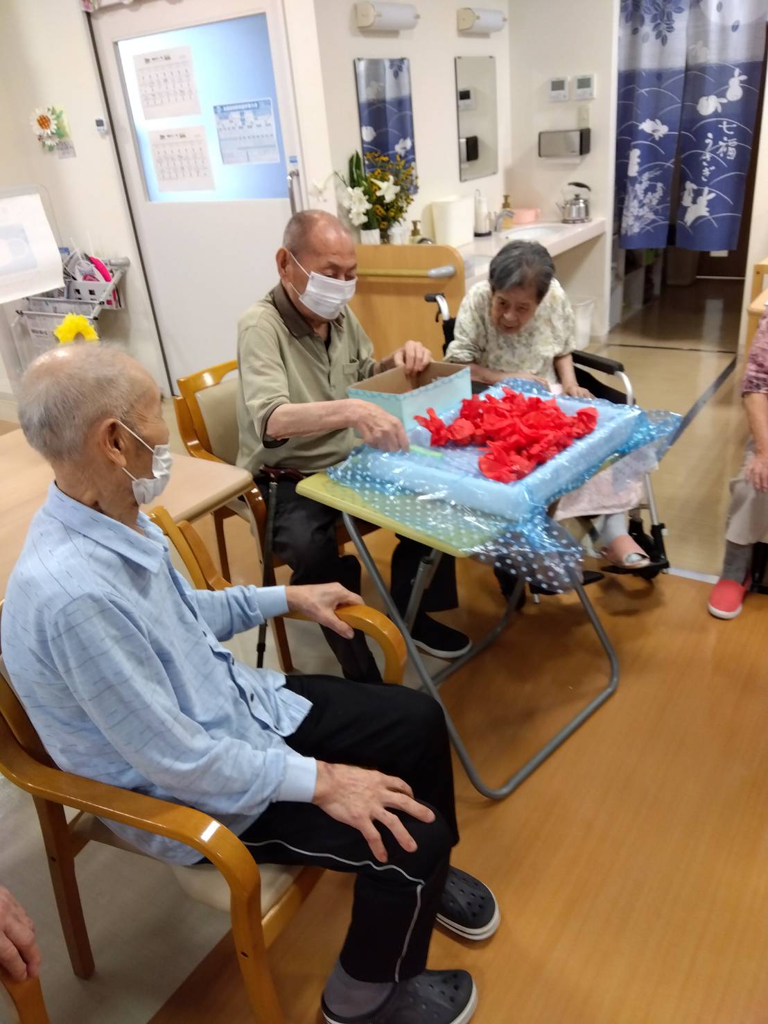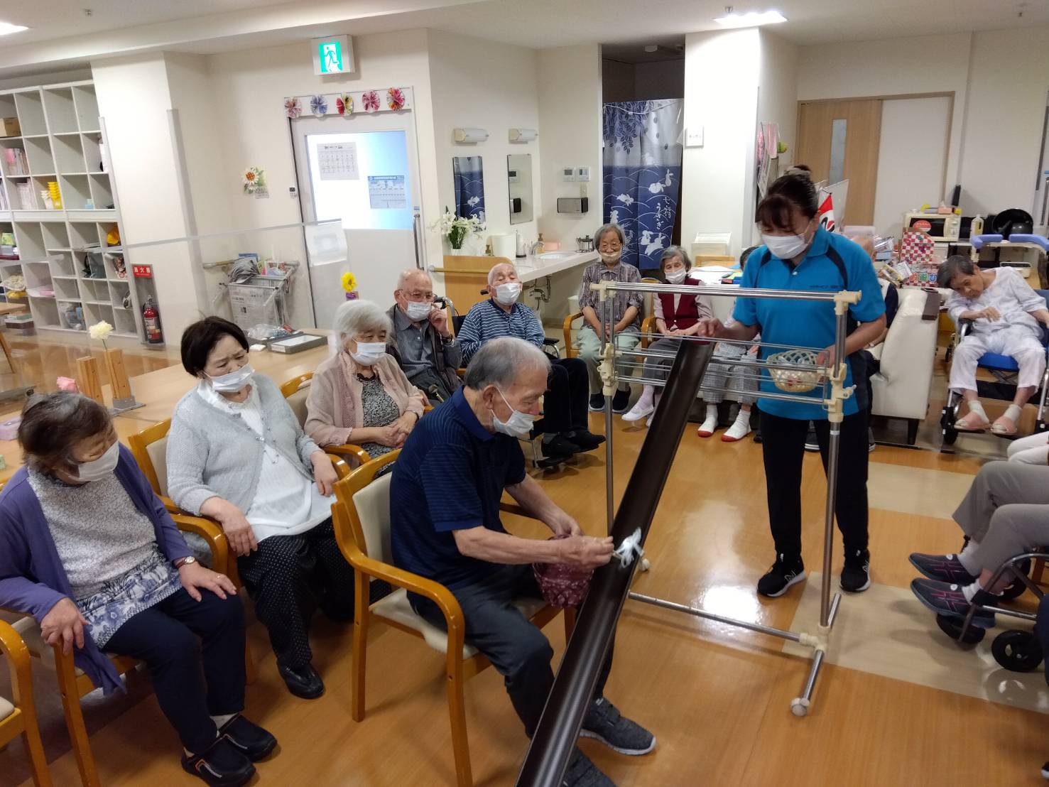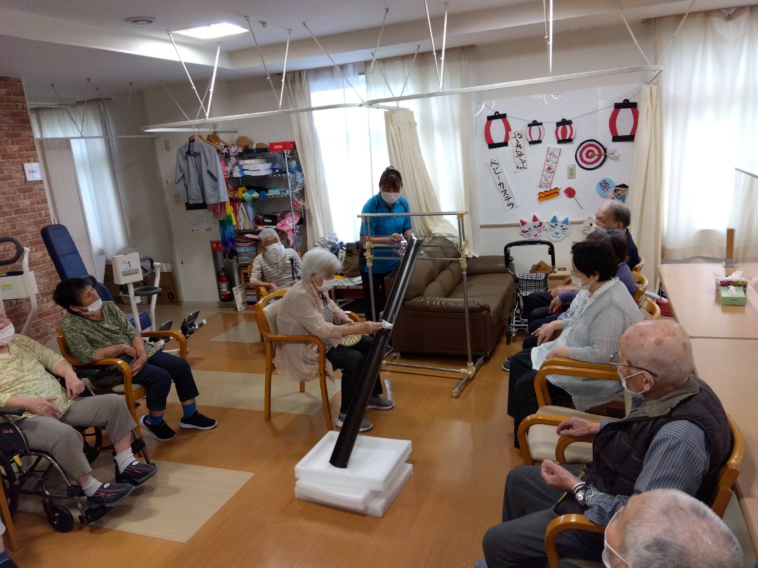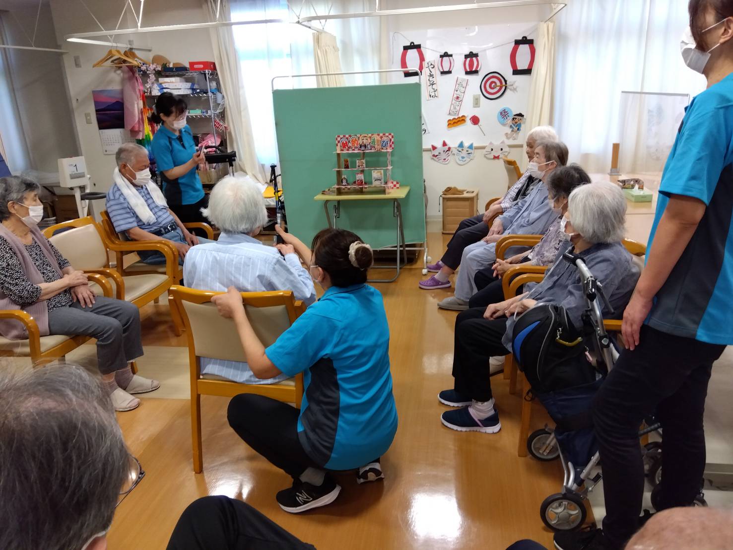 デイサービスでは毎年恒例の夏祭りを8月21日から23日の3日間で行いました。今年は射的や金魚すくいに加え、流しそうめん大会を開催!利用者さんはもちろんのこと、職員も声を出して楽しく笑って参加しました。