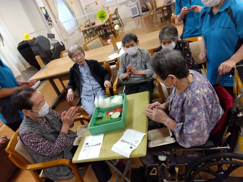 パンにたまごやトマト、レタスを挟んで作るサンドイッチゲーム容器に蓋をして敬老の日の熨斗をつけたら完成です