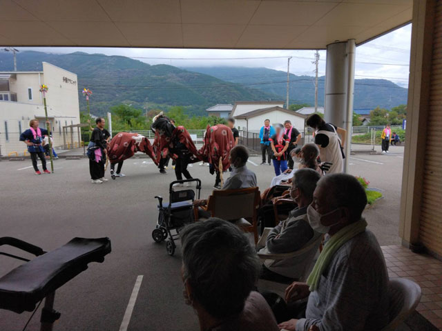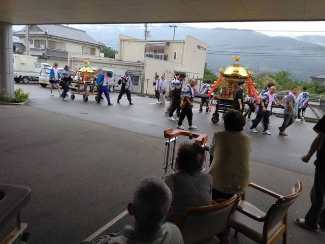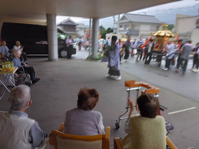 10月12日に脇町野村地区のお祭りがあり、獅子舞とお神輿を百々家入居者の皆さんもご覧になりました。