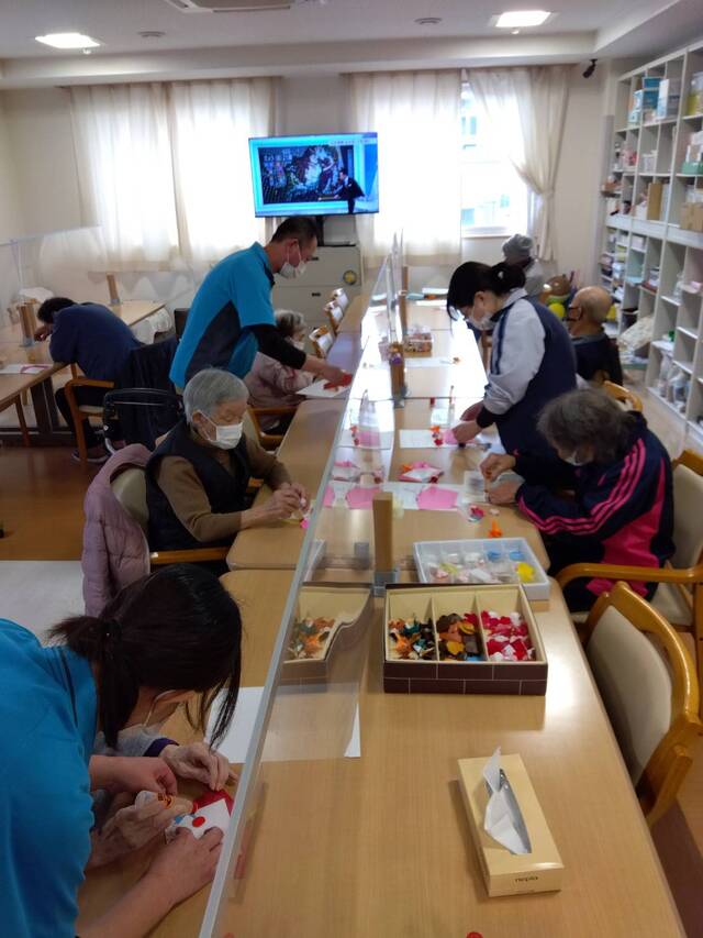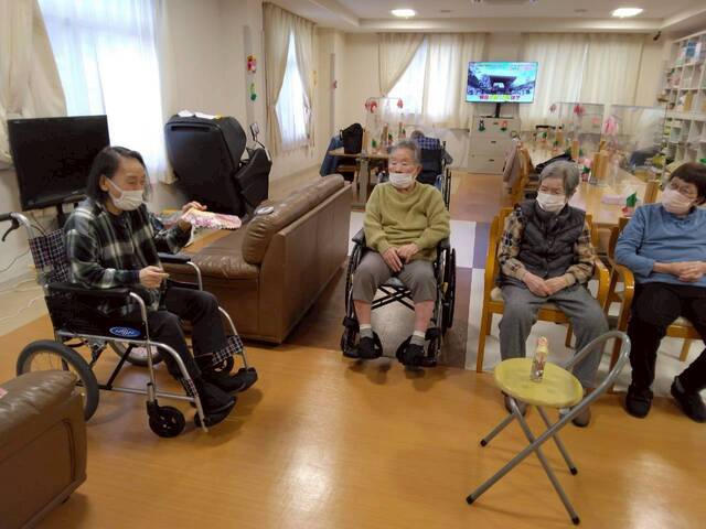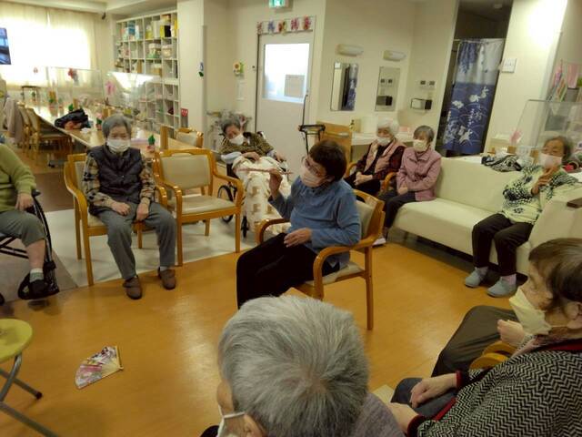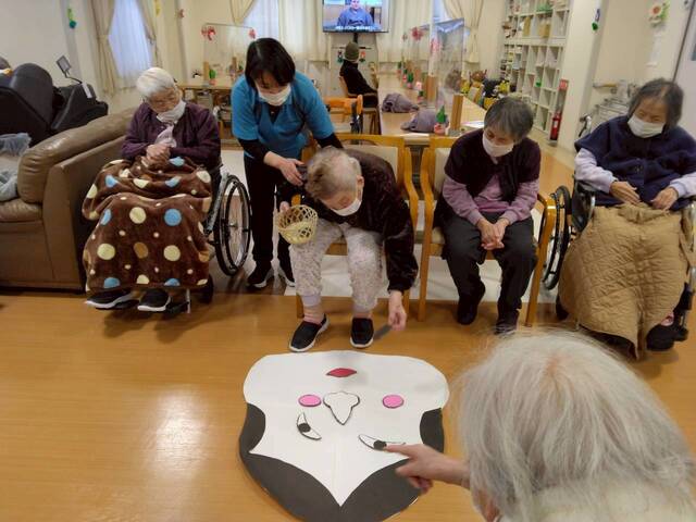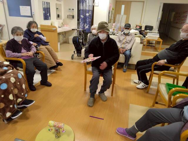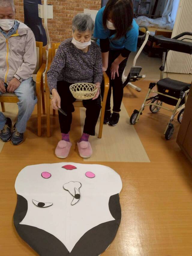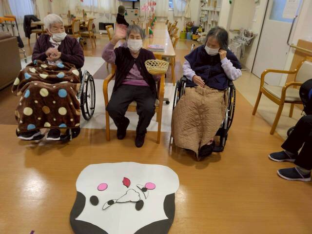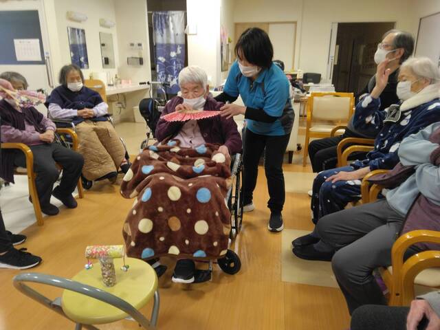 お正月レクリエーションには「福笑い」と「投扇興」にて皆さん初笑いされました