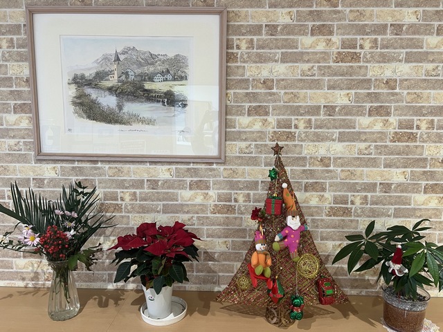 デイサービスでは、リースを利用者さんと飾り付けをしました。 百々家玄関もクリスマス仕様となってい...