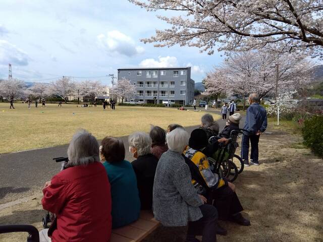 デイサービスの利用者の皆さんと公園前の桜を見に行きました。