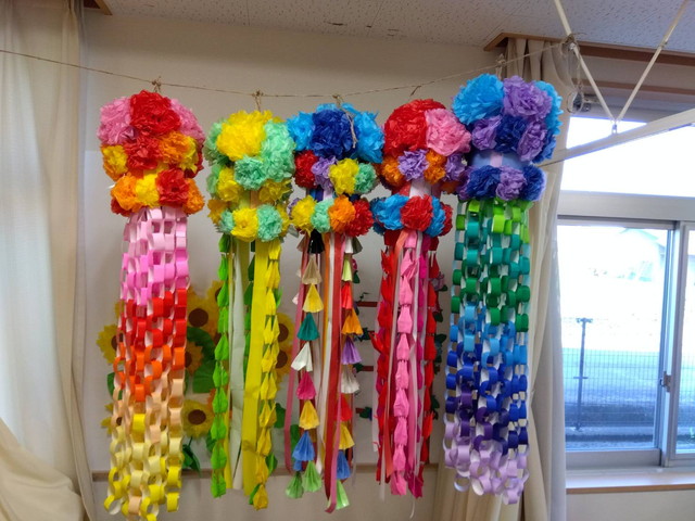 利用者の皆さんが七夕に向けて、願いを込めて短冊や飾りを作って下さいました。仙台の七夕まつりをモチ...